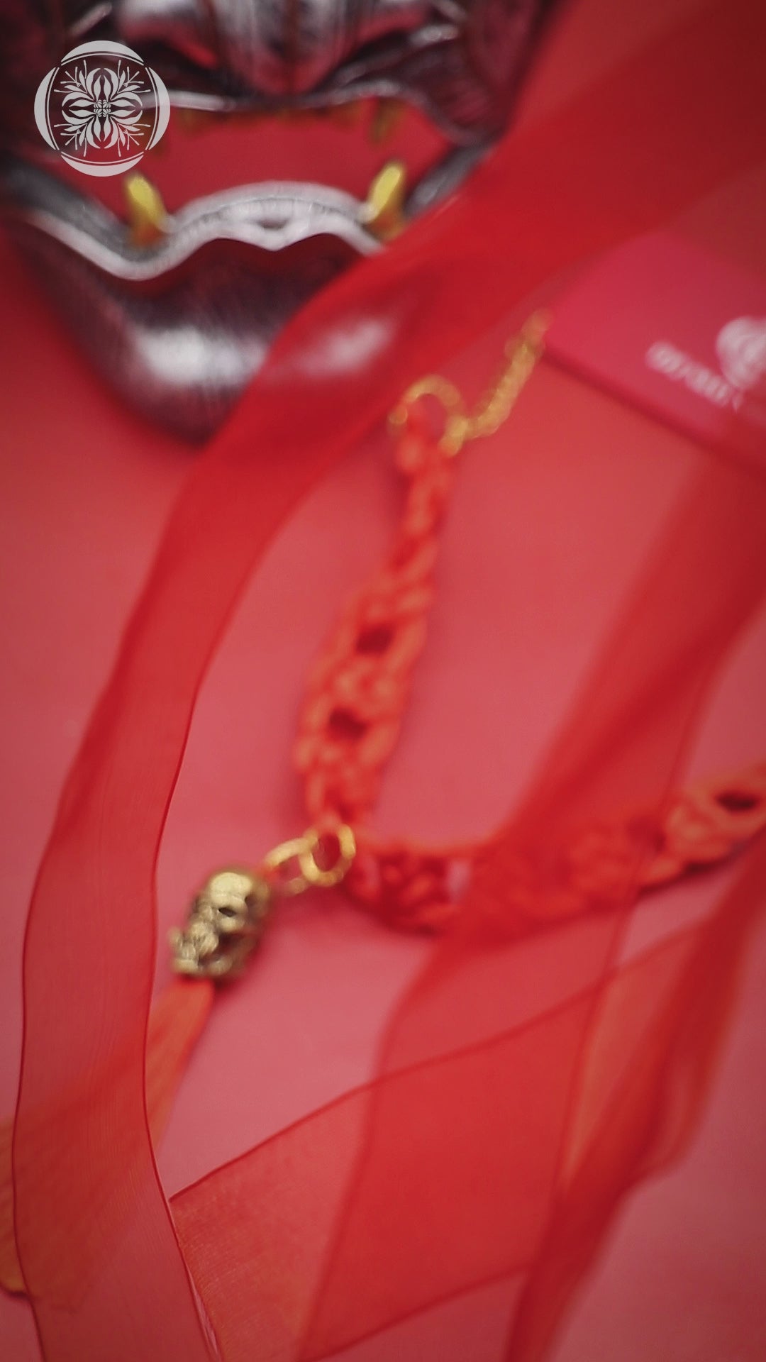This addition to our Oni inspired collection is a minimalist macrame choker adorned with a skull charm. It is handmade with care using nylon cords. Its minimalistic style is great for coordinating with your everyday style or to enhance your style for other special occasions. This is a perfect gift for yourself, family, friends, cosplayers and other hobby enthusiasts.